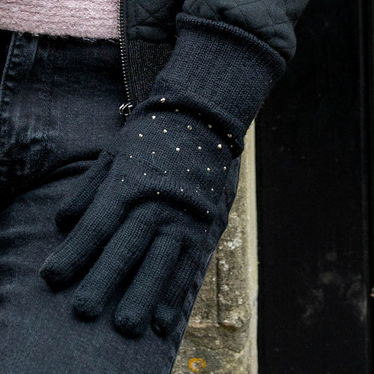 Black Embellished Knit Gloves – Cosy Winter Accessory with Diamante Studs