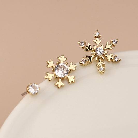 Faux Gold Plated Triple Snowflake Crystal Stud Earring Set