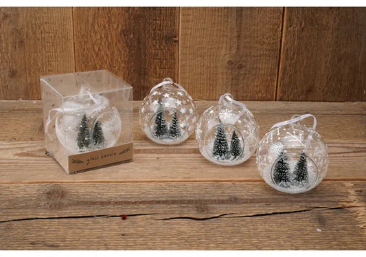 Glass Bauble Tree Decoration with Snow-Covered Tree Figurines