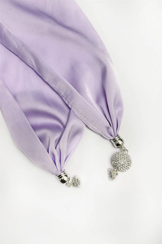 Lilac Silk-Feel Neck Scarf with Diamanté Magnetic Clasp