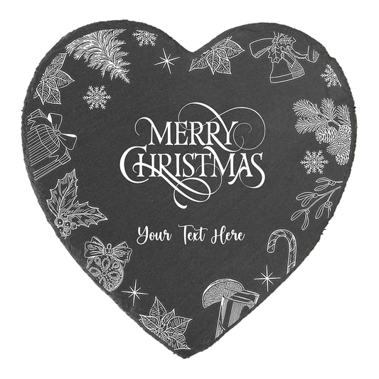 Personalised Slate Heart Christmas Charcuterie Board | Custom Festive Cheese & Treat Platter with Wreath Design