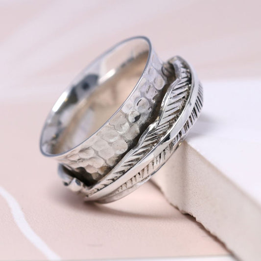 POM Sterling Silver and Brass Hammered Spinning Ring