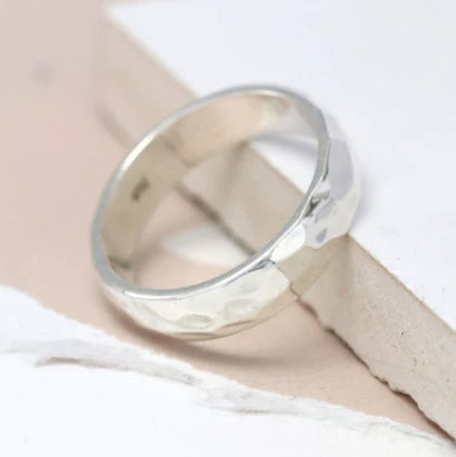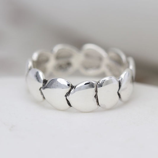 POM Sterling Silver Brushed Band with Silver Heart Ring