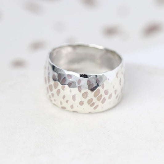 POM Sterling Silver Chunky Hammered Ring with Brass Heart