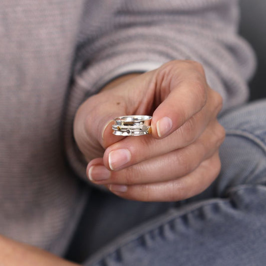 POM Sterling Silver Twist Bands and Dots Spinning Ring