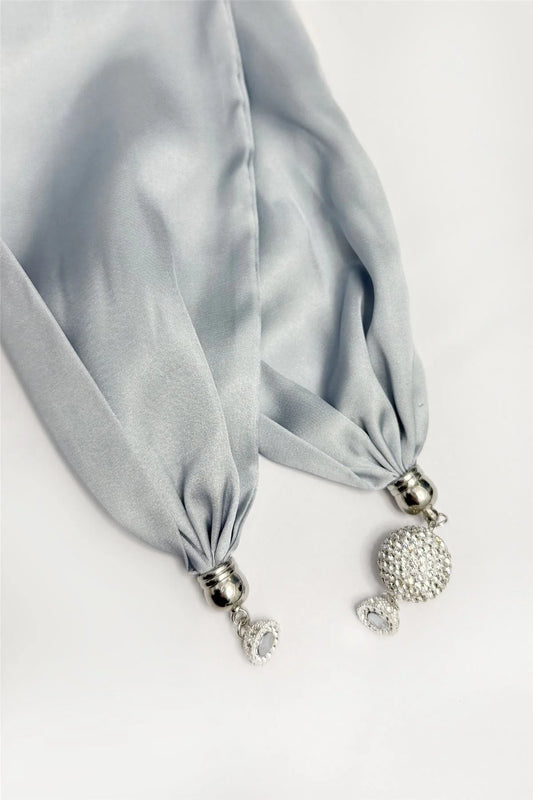Powder Blue Silk-Feel Neck Scarf with Diamanté Magnetic Clasp