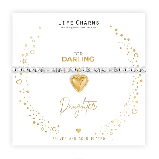 Delightful Daughter Silver Heart Beaded Bracelet - Life Charms Jewellery