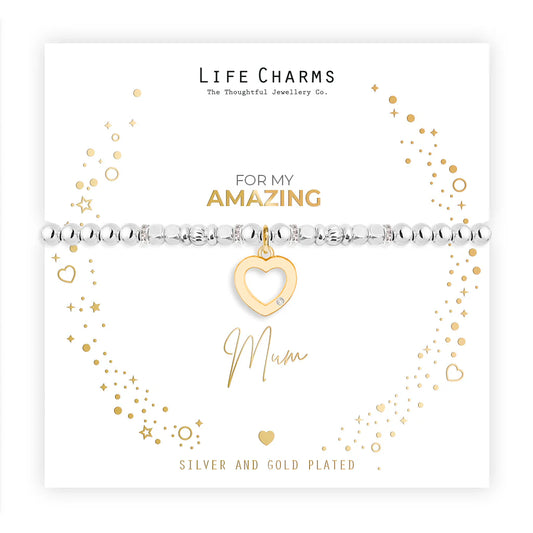Amazing Aunty Silver Heart Beaded Bracelet - Life Charms Jewellery