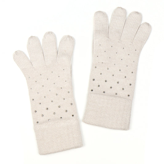 Cream Embellished Knit Gloves – Cosy Winter Accessory with Diamante Studs