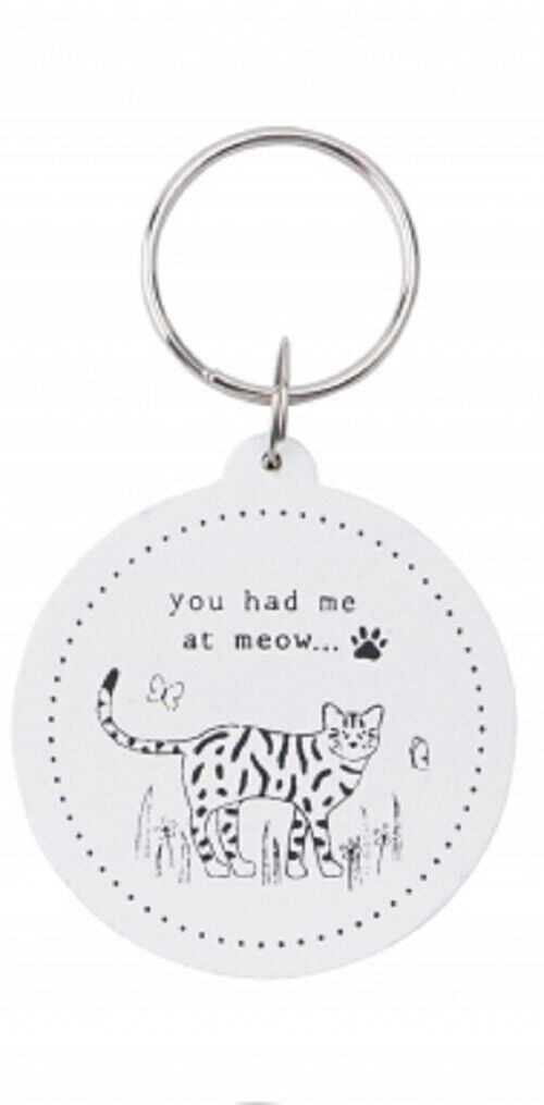 Sentiment Wooden Black & White Cat Key Ring Keyring Key chain with Slogan