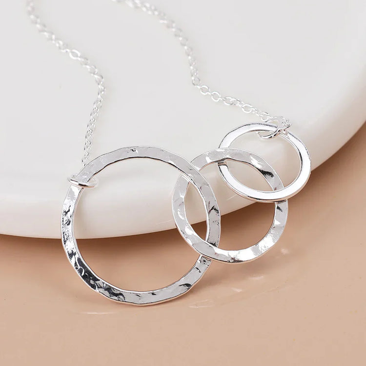 Sterling Silver Textured Triple Ring Necklace