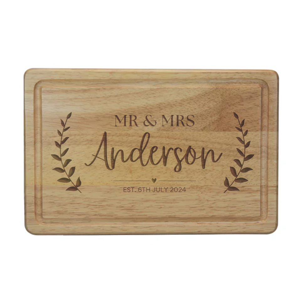Personalised Wooden Chopping Board | Custom Engraved with Surname & Wedding Date