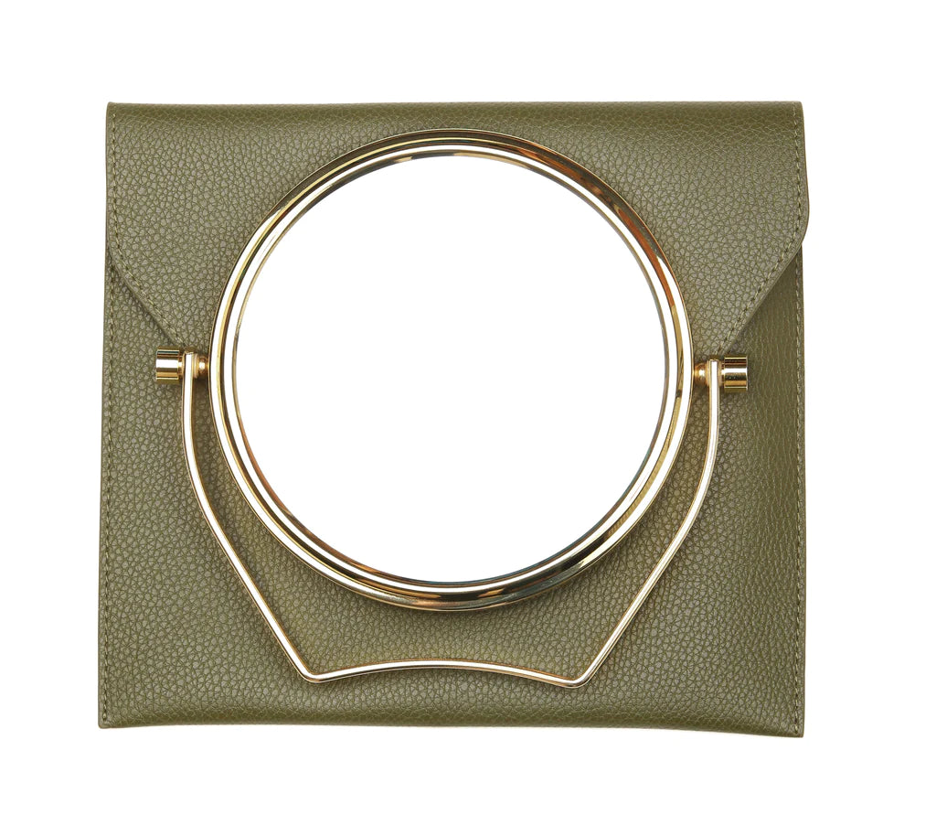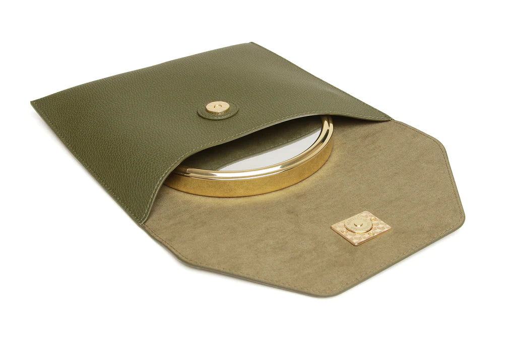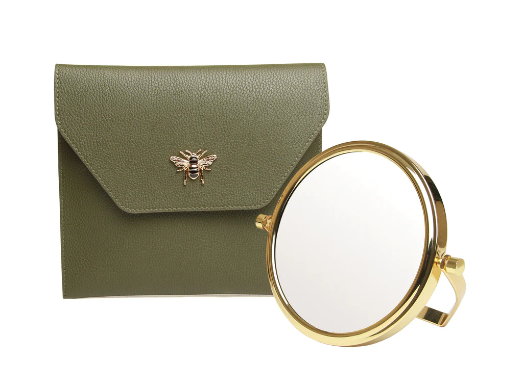 Alice Wheeler Olive Luxury Travel Mirror and Case with 7x magnifying