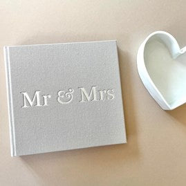 - Inside cover data page for the Bride & Groom's details, date and venue