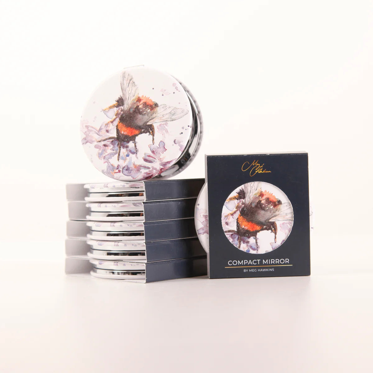 Add a touch of nature to your everyday routine with this Bee on Heather Compact Mirror, featuring the stunning artwork of Meg Hawkins. Designed for convenience, this handbag-sized mirror has a soft-touch feel and comes in a sleek sleeve-style packaging. At 70mm round, it’s the perfect size for quick touch-ups on the go. A matching cosmetic bag is available, making it a beautiful and practical gift for any occasion!
