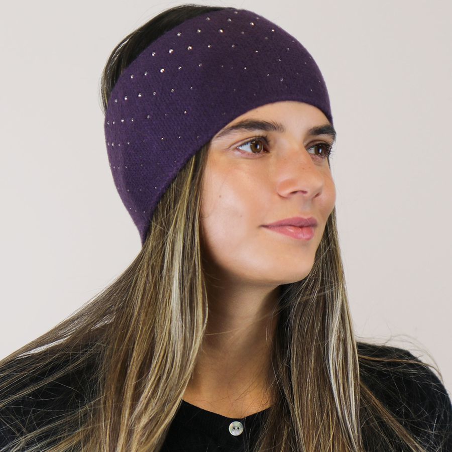 Purple Embellished Knit Headband – Versatile Cosy Winter Accessory with Studded Trim