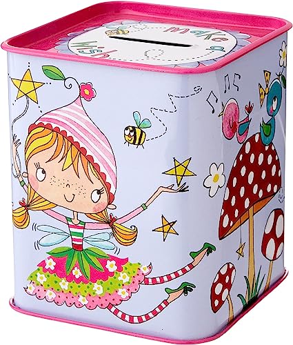 These colourful money tins for children have a slit in the top to put coins through and a removable tin base.