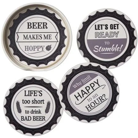These novelty bottle top easy to clean coasters are made from glossy ceramic and are the perfect gift for the man pad. The bases are padded to protect your surfaces.