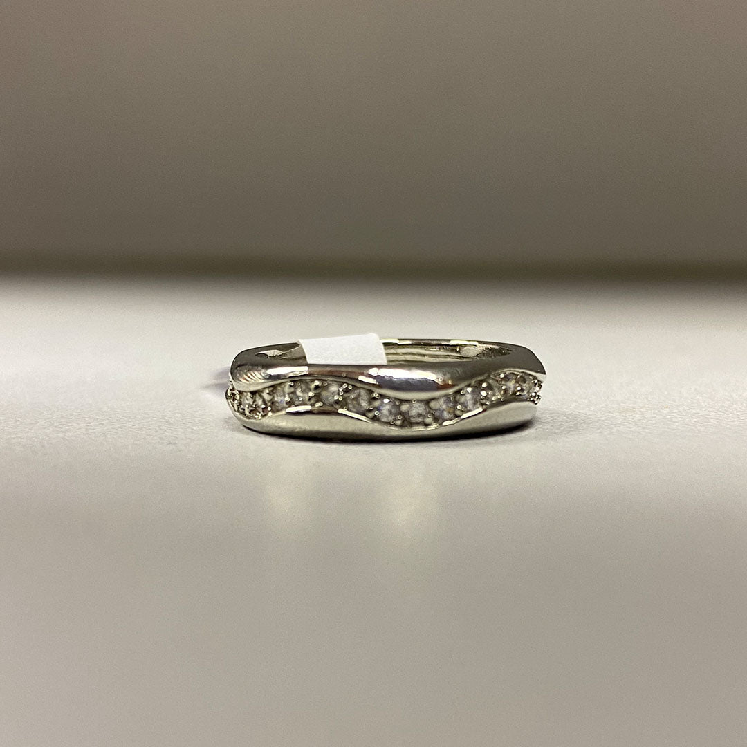 Silver plated ring set in a crystal encrusted wave design.