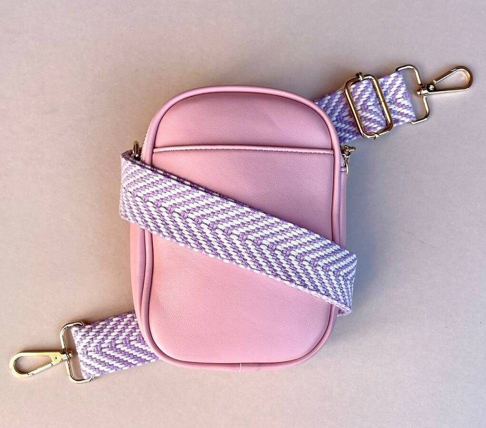 Lilac White Two Tone Woven Chevron Bag Strap (Gold Hardware)