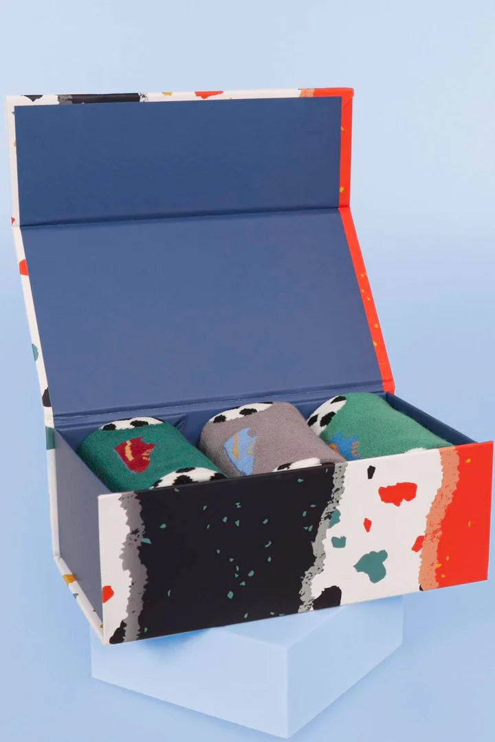 A selection of football inspired mens bamboo socks in an artistically inspired colourful gift box. An ideal gift for any football fan, these stylish dress socks can be worn for any occasion. Designed for comfort, these high quality bamboo socks will keep your feet fresh. Gentle on the skin and soft to the touch, these mens bamboo socks feel wonderful to wear. UK Size 7-11.