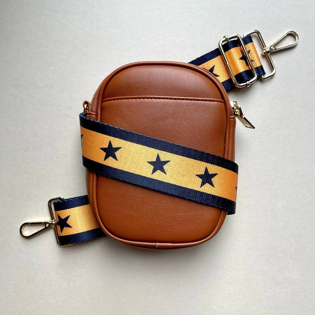 Mustard & Navy Star and Stripe Bag Strap (Gold Hardware)