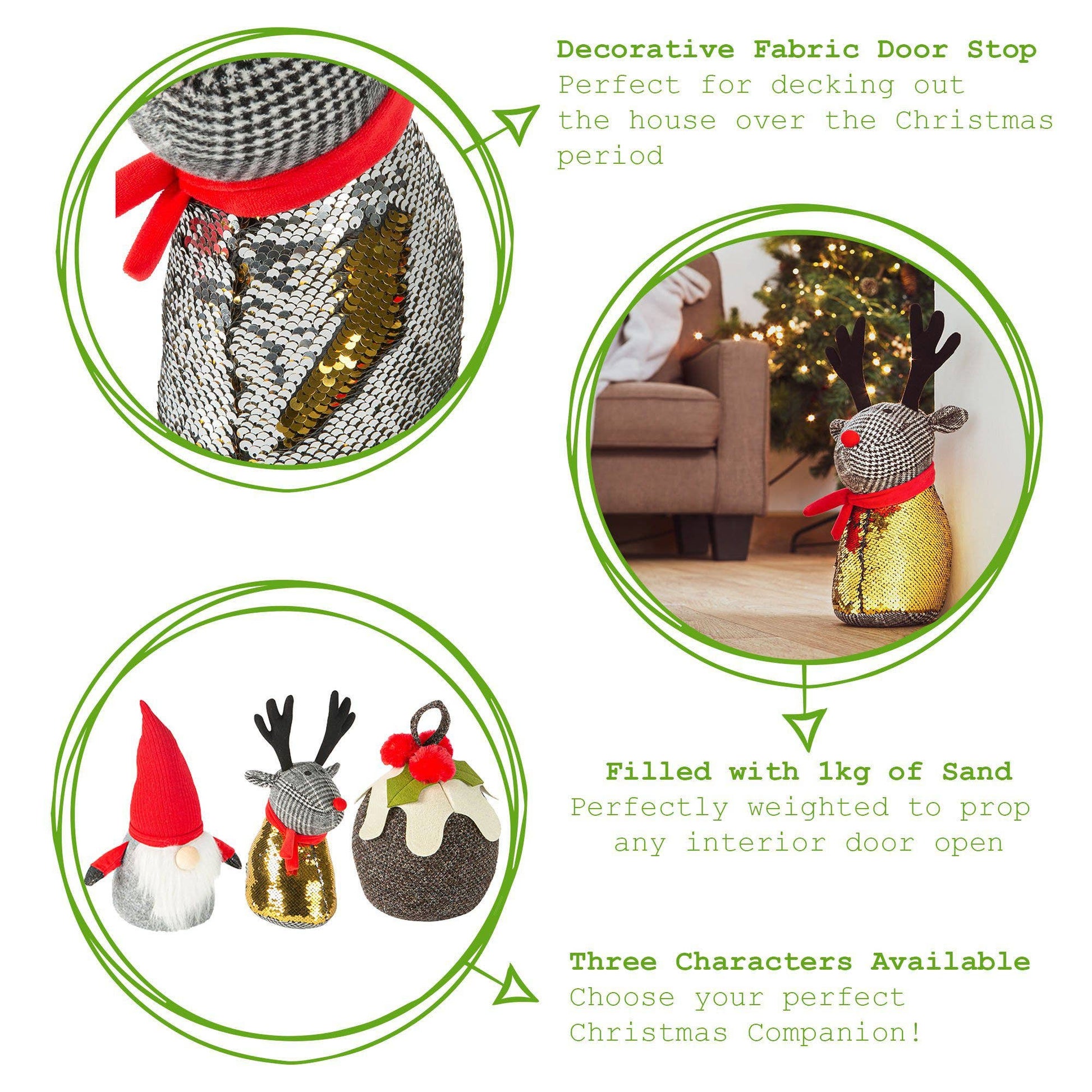 Reindeer Doorstop. Decorative Fabric Door Stop - Perfect for decking out the house over the Christmas period