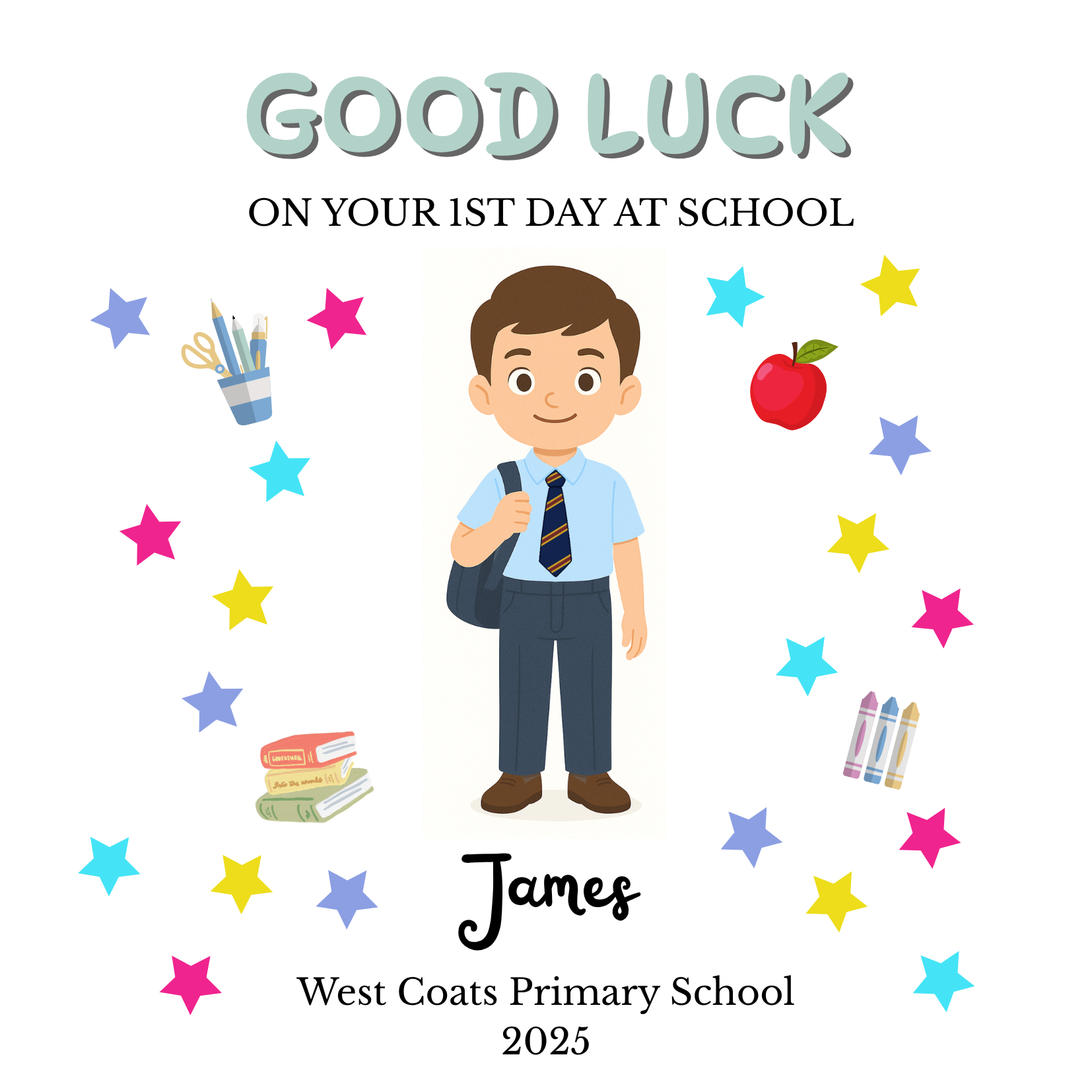 Personalised Good Luck Starting School Card – Custom Character & Name