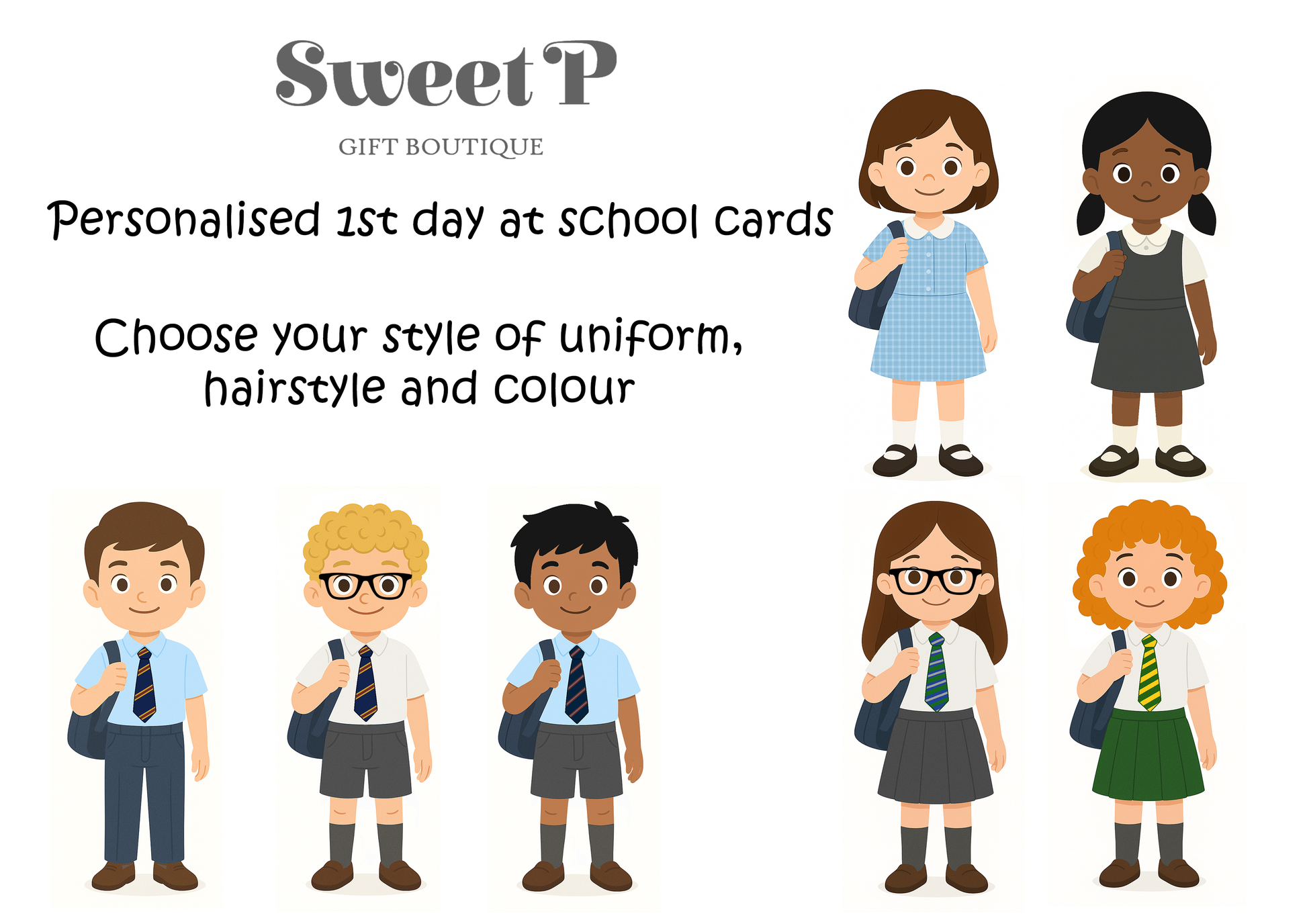 Wish them all the best on their first day at school with this charming, hand-made personalised card – a keepsake they’ll treasure forever.