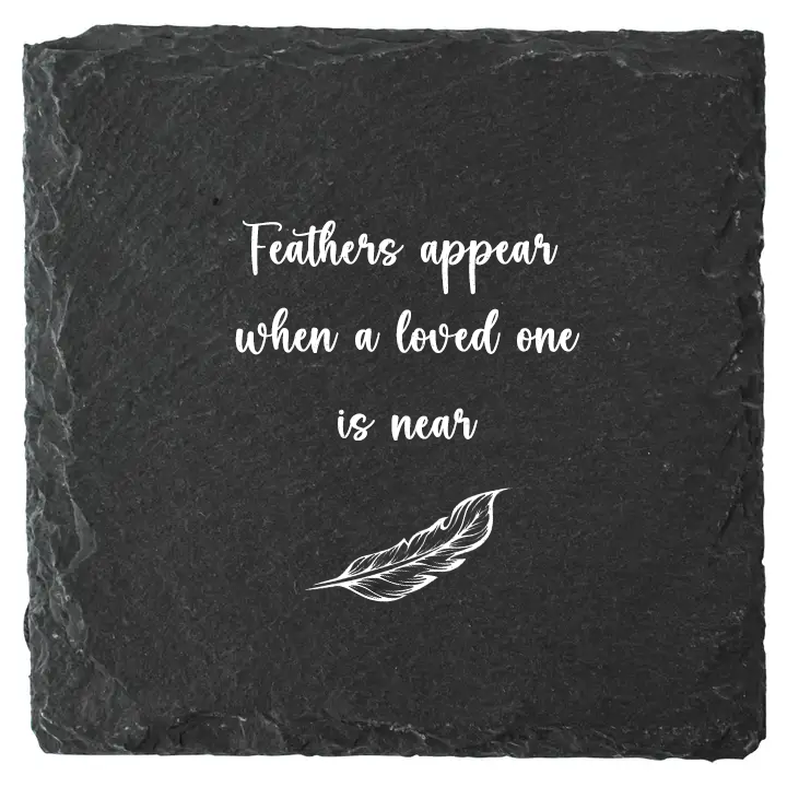 Engraved Slate Coaster | Feathers Appear When Loved Ones Are Near