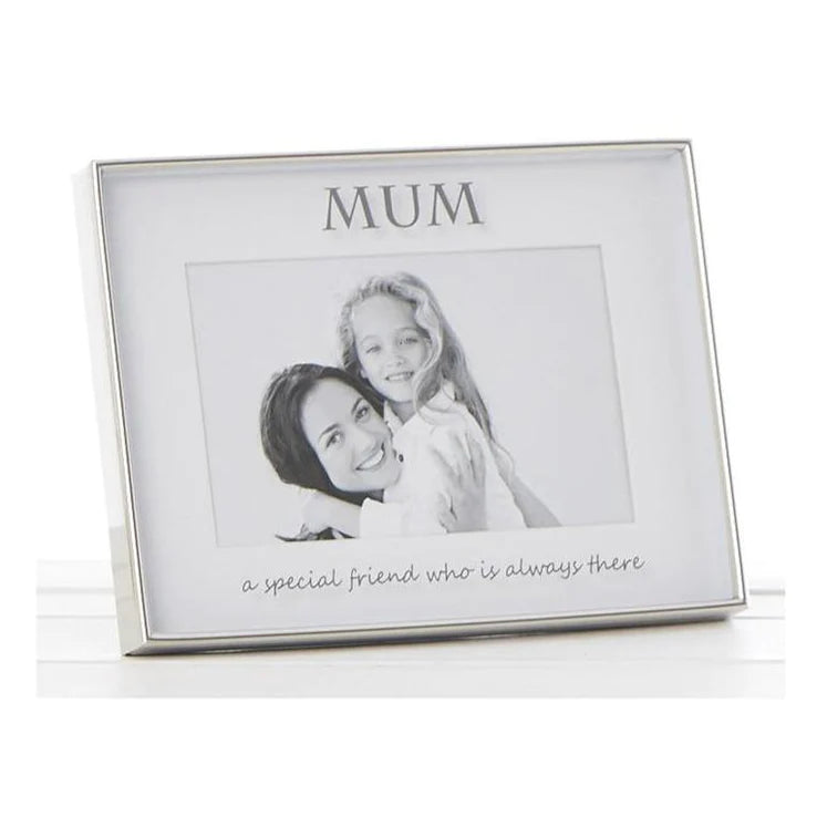 Sentiment Mirrored Family Photo Frame holds a 6 x 4 photograph. A lovely mirrored photo frame to display that all important memory. The frame has mirrored lettering and a sentimental verse on the which reads "MUM a special friend who is always there".