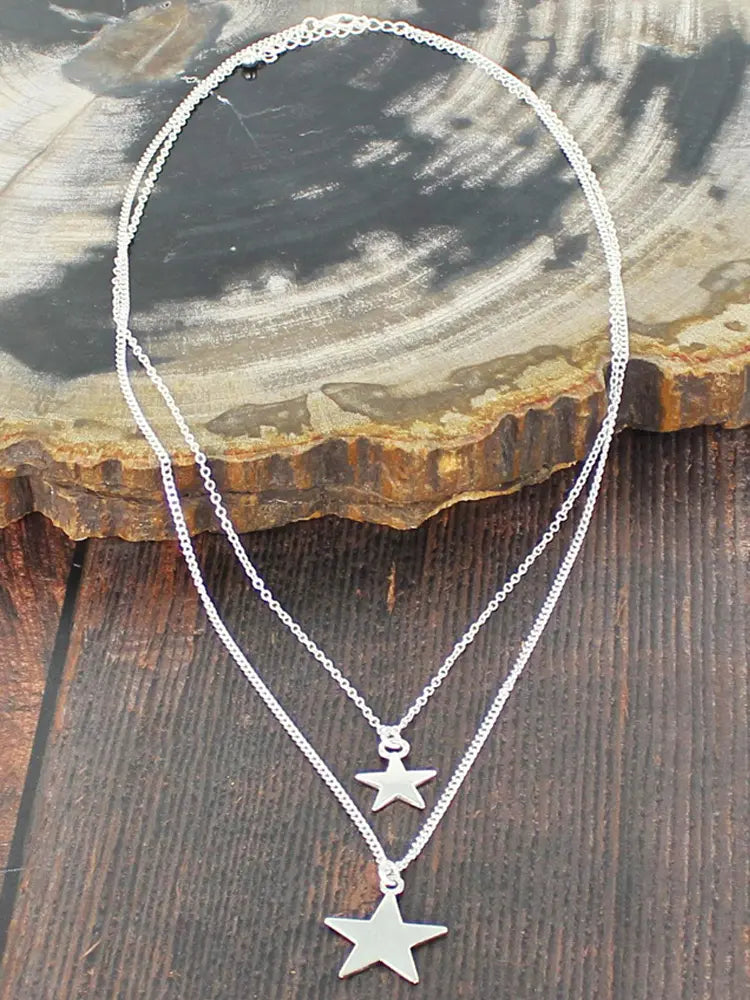 Silver Double-Strand Star Charm Necklace