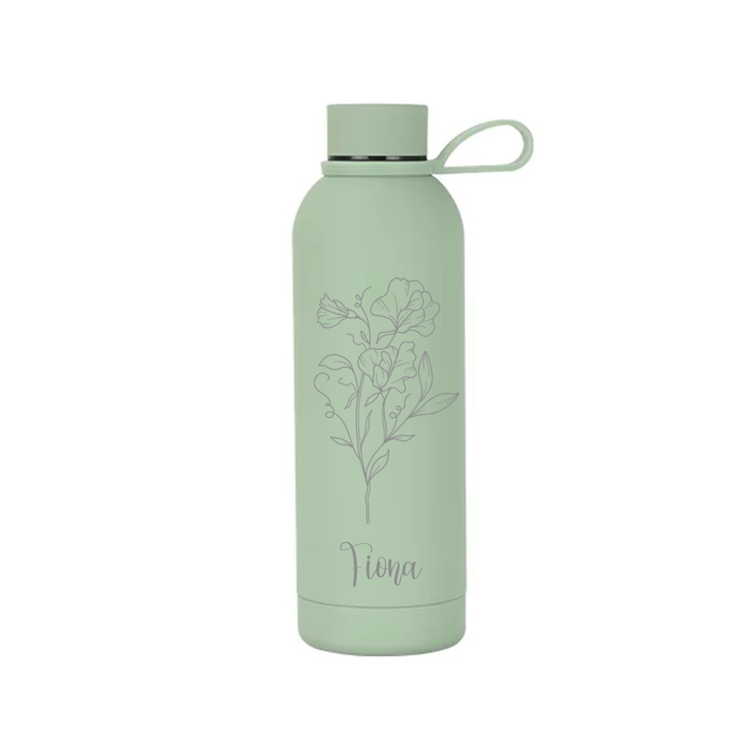Personalised 500ml Double Wall Vacuum Insulated Water Bottle – Custom Birth Flower & Name Engraving